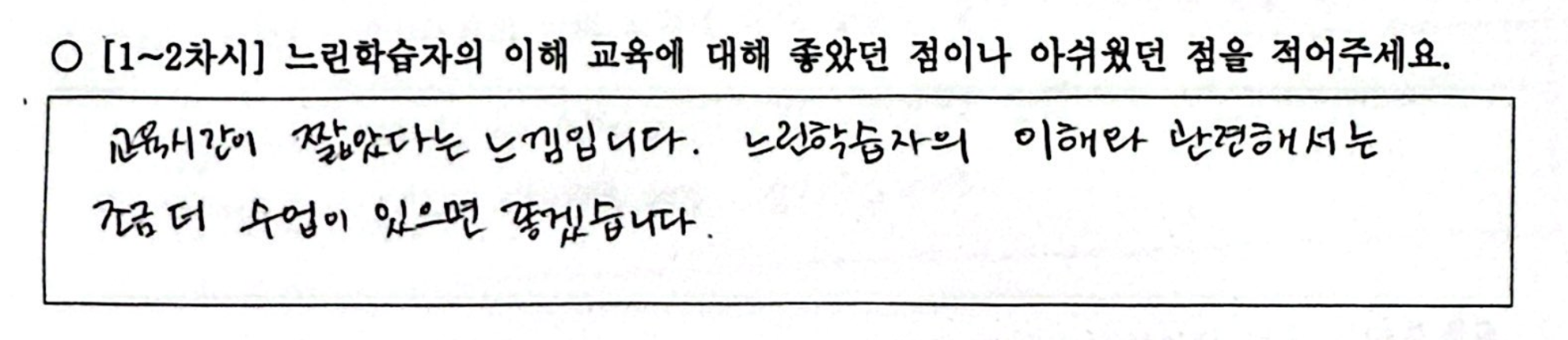 정말 많은 분들이 지원해주셨고, 세상이 따듯함을 배울 수 있었습니다. 다른 공공교육에 비해 시급 등 혜택(?)이 낮음에도, 많은 분들이 느린학습자아동 강사과정에 관심을 가져주셨고, 더욱 준비를 철저하게 해야함을 느낄 수 있었습니다.