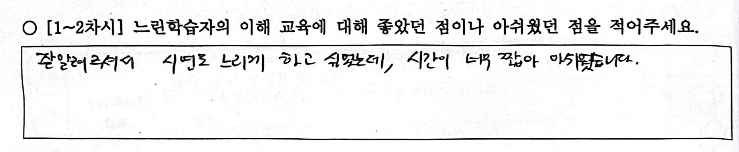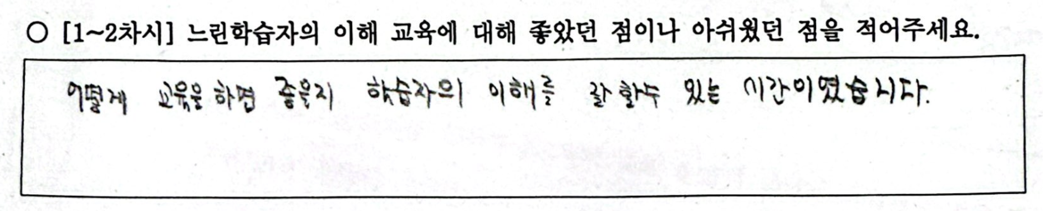 또, 스킬적인 부분과, 교수법을 모두 녹이려고 하다보니, 시간이 부족함을 느낄 수 있었는데요, 느린학습자아동 교수법 등을 더 추가하고 체계화하여, 28시간보다 더 길게 준비했어야 더 완벽한 강사과정이 되겠구나 느낄 수 있었습니다!