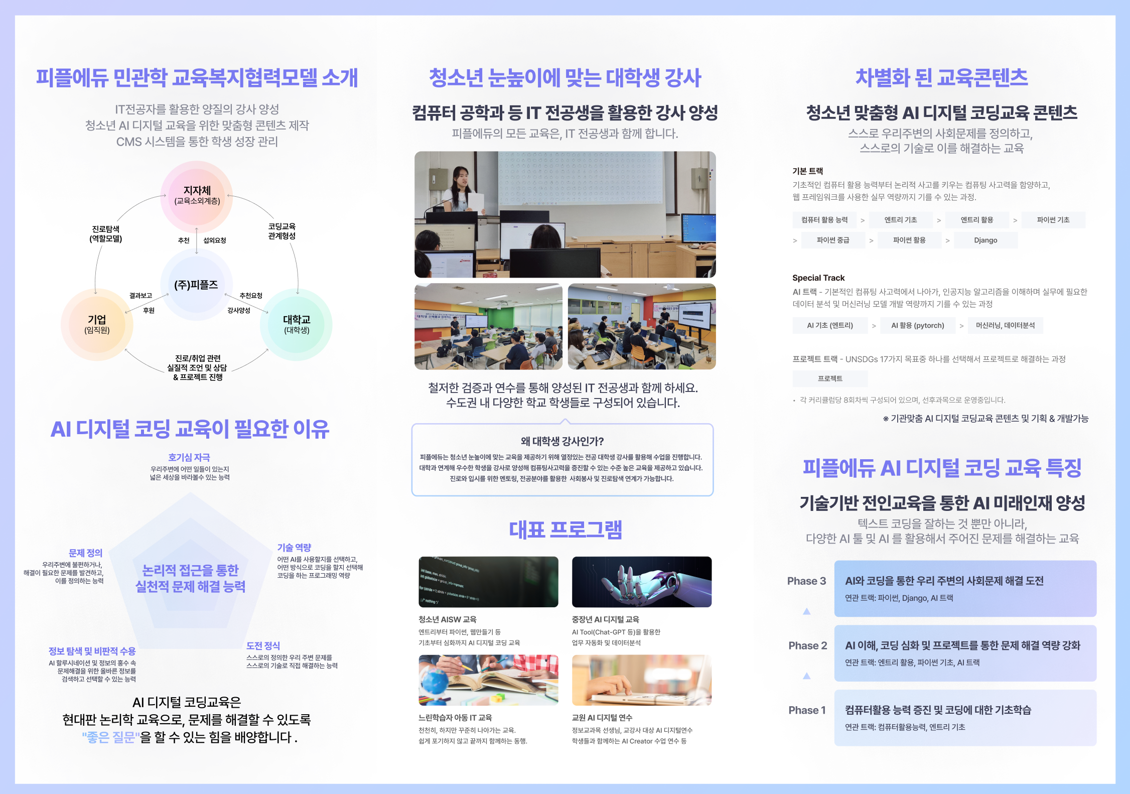 피플에듀는, AI시대에 맞게 AI 윤리, 디지털리터러시 교육부터, AI를 활용해 아이들 자신만의 작품(동화책, 영상 등)을 만드는 교육을 만들어가고 있습니다!