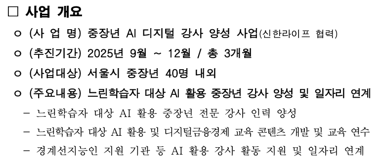상반기 교육에서는 AI나, 컴퓨터활용등 툴의 활용을 어떻게 하면 더 잘 가르치게 할 수 있을까? 그리고 4050의 디지털역량을 향상할 수 있을까? 두가지 고민에 조금 더 치우쳐져 있었습니다.