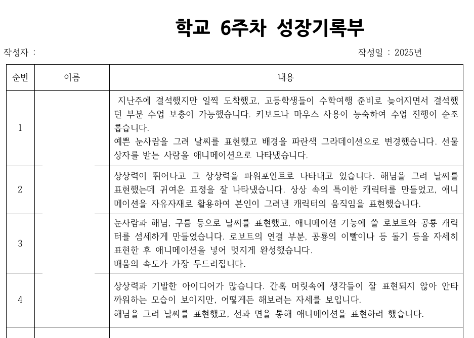 2. 학생별 성장일지