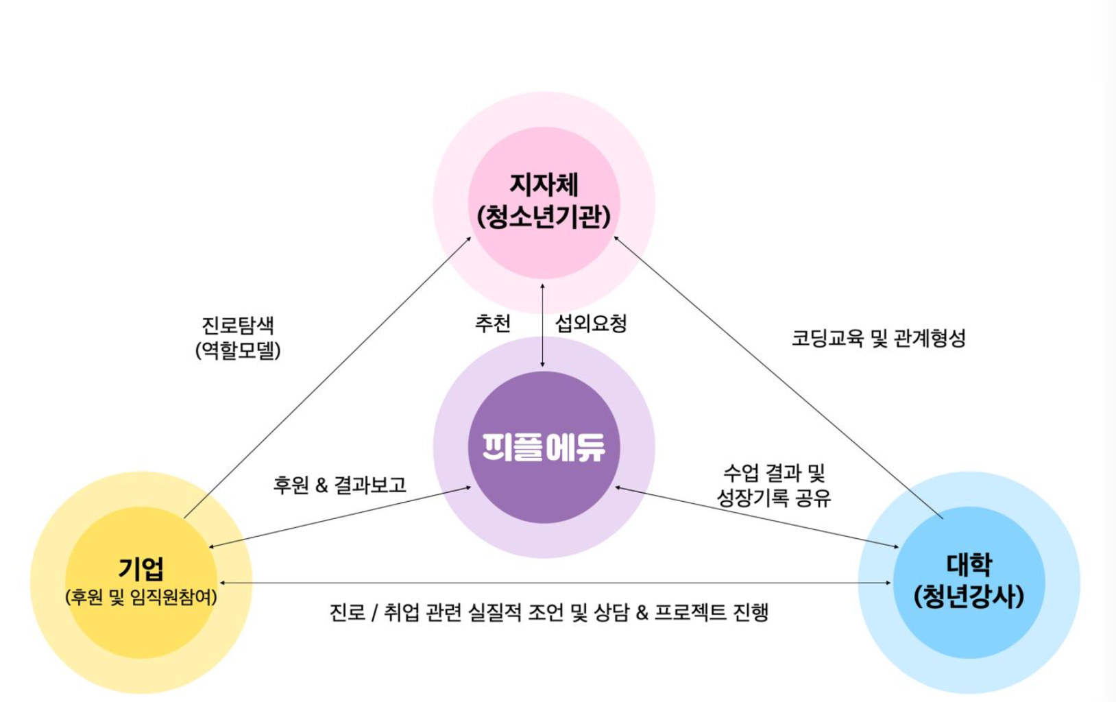 피플에듀는, 지자체 및 교육당국, 기업, 지역내 대학이 함께 지역의 AI디지털교육격차를 해소해, 교육불평등 문제를 해결하는 민-관-학 교육복지협력모델을 만들어가고 있습니다.