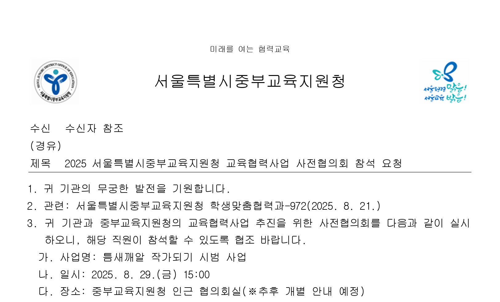 그래서 이번에는 삼일미래재단이 위치한 용산구가 관할인 서울중부교육지원청과 함께 사전협의회를 구성하였고, 아이들을 위한 교육을 어떻게 해야할지 고민하고 자문을 구했습니다.