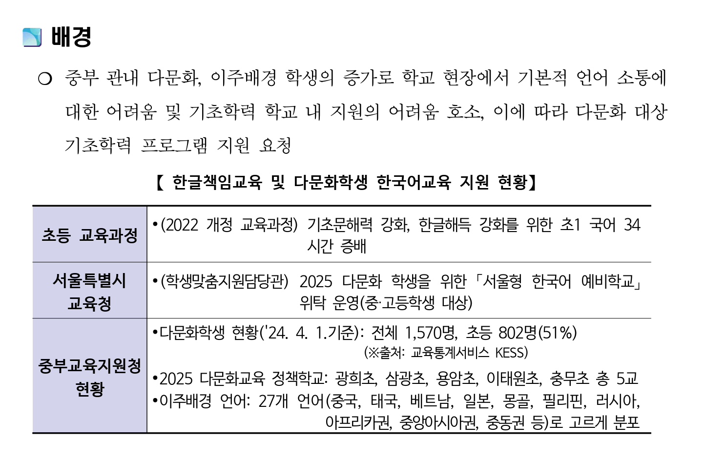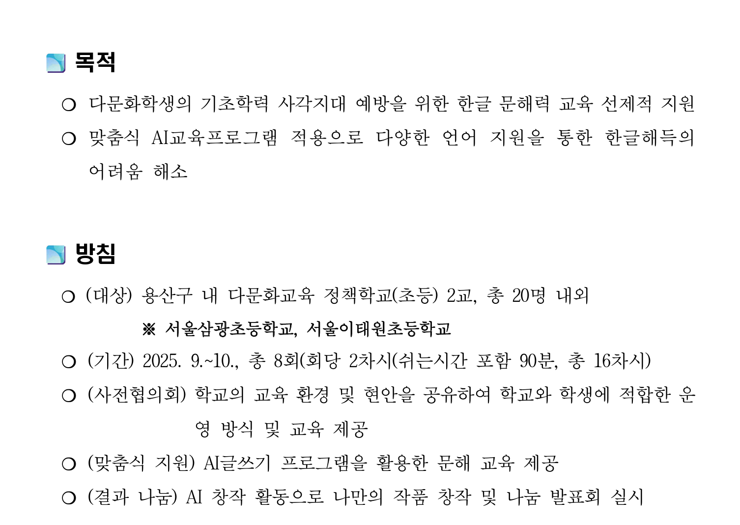 오늘은, 삼일미래재단과 함께 운영한 다문화아동 AI한글 교육의 성과 및 기획/목적 등을 소개해드리고자 합니다.
