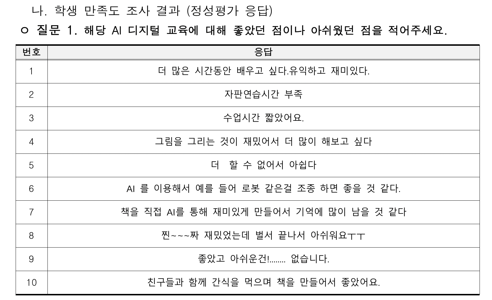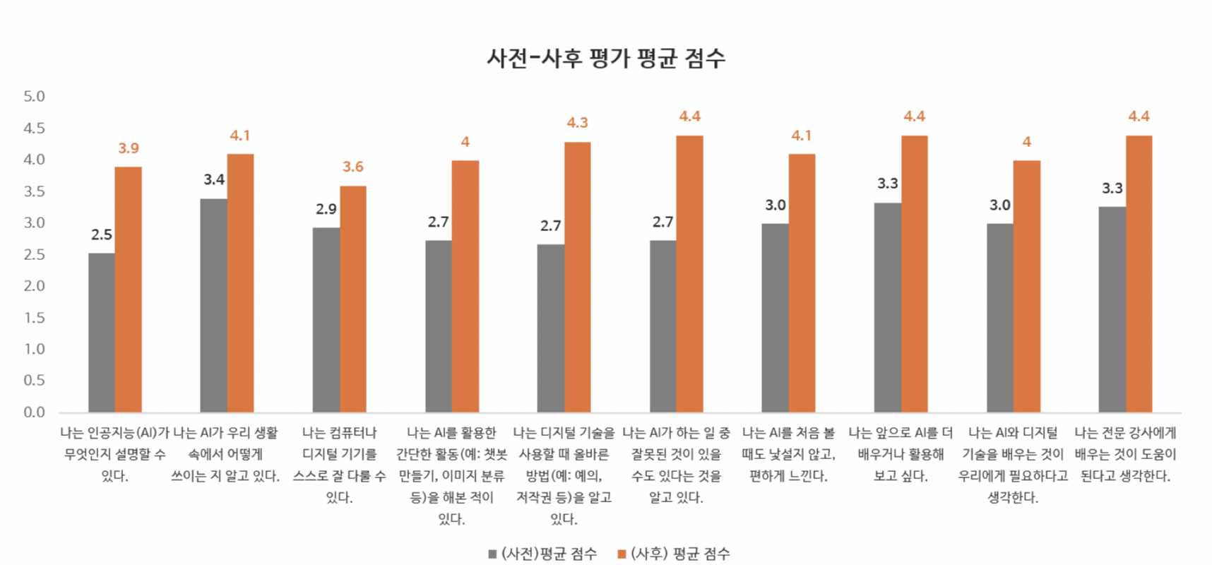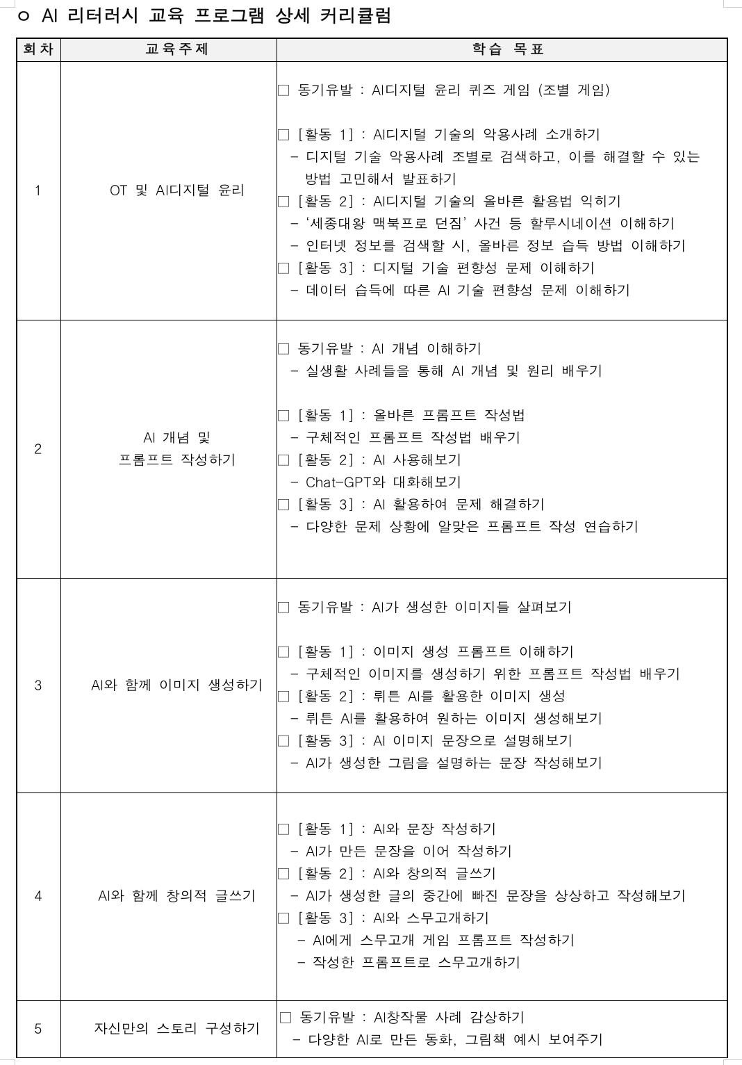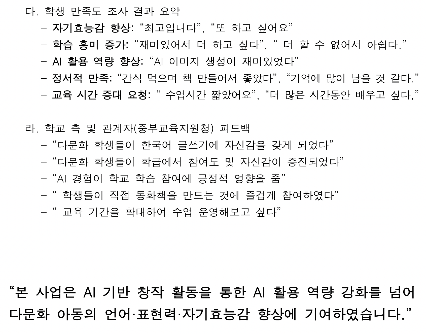 아무래도 중도입국자녀 및 다문화아동 친구들을 위한 교육이다보니 AI를 활용해 한글을 읽고 쓰고 말하는 것에 중점을 두어 교육을 기획하고 운영되었습니다!