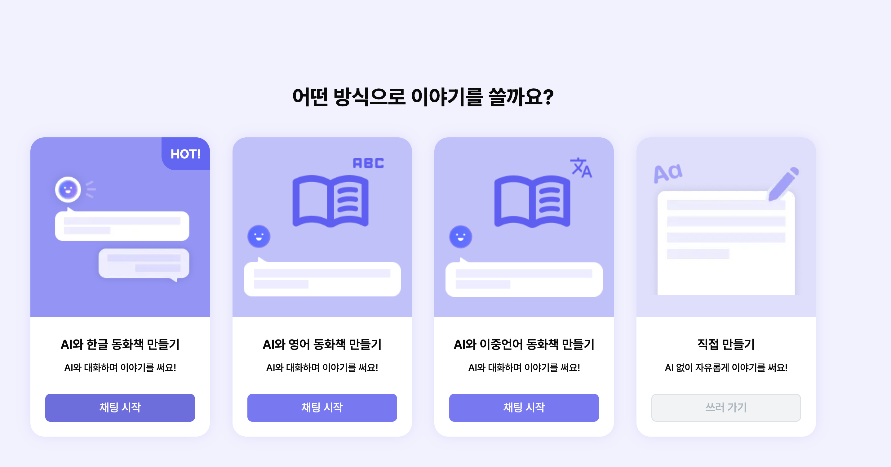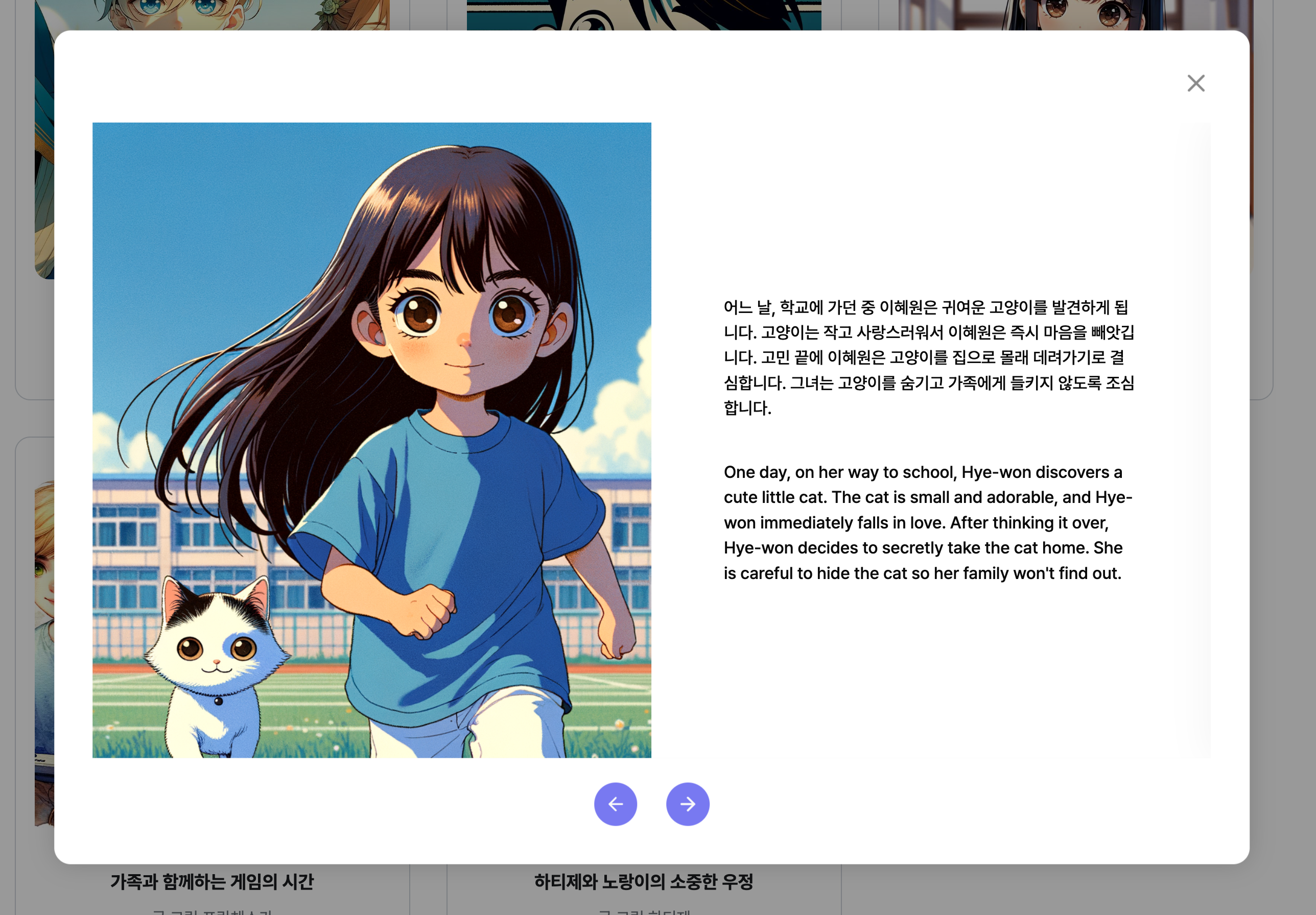 피플에듀의 Dream AI Studio 에서는 한글 그림책 기능만 지원되었는데, 다양한 언어로, 자신이 살던 나라의 언어를 선택해서 두가지 버전으로 언어를 제공할 수 있게 고도화했습니다.