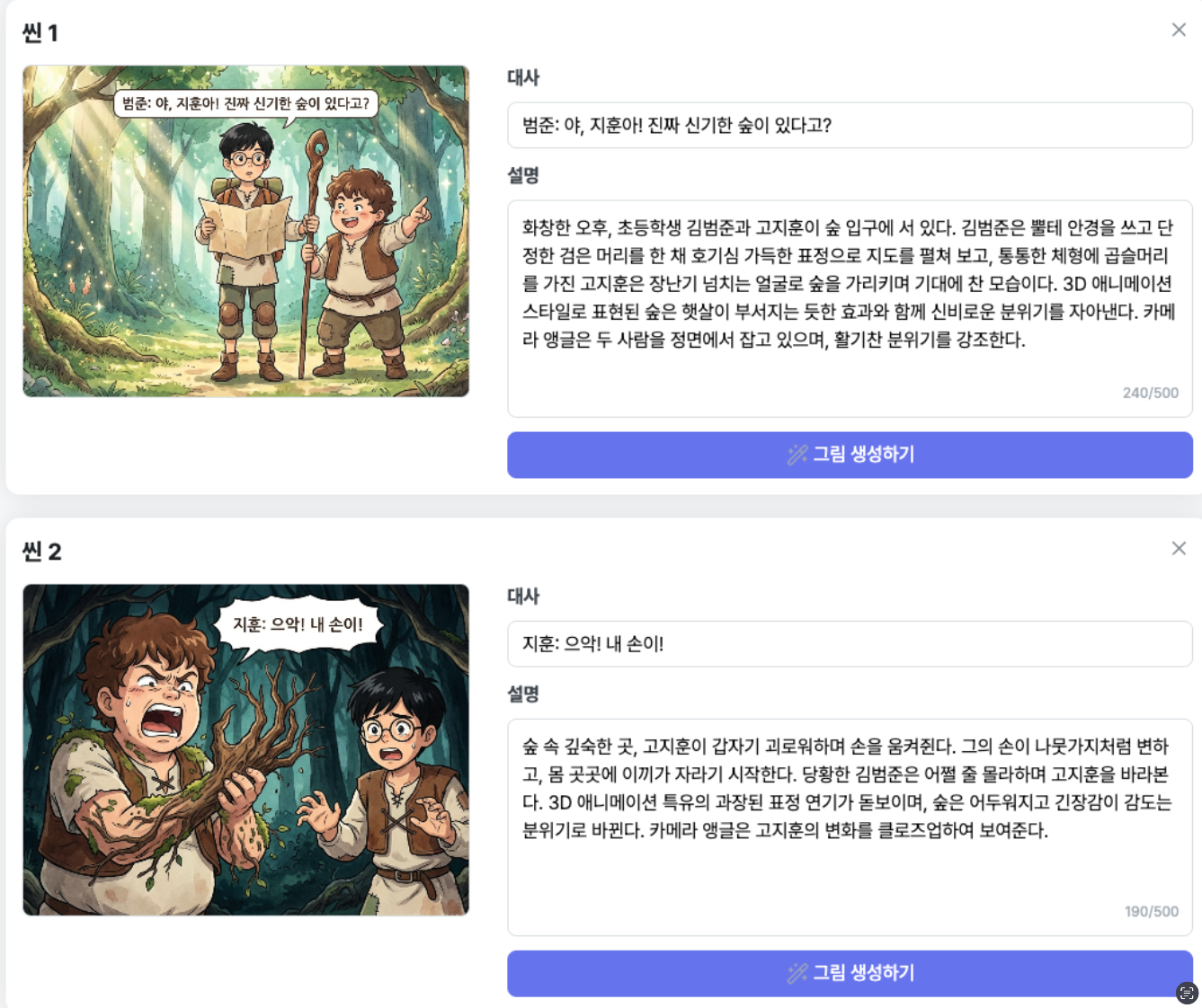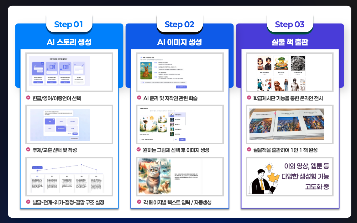 -> 그림책, 웹툰, 영상 등 실제 활용 가능한 결과물을 만들어낼 수 있어요